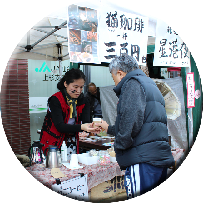 上杉ねこまつり 宮城県仙台市青葉区上杉1丁目2-16 JAビル宮城庭園広場 お問合せ:022-261-4784 (前田ひろみ)